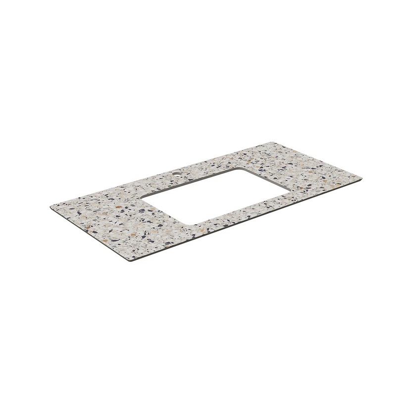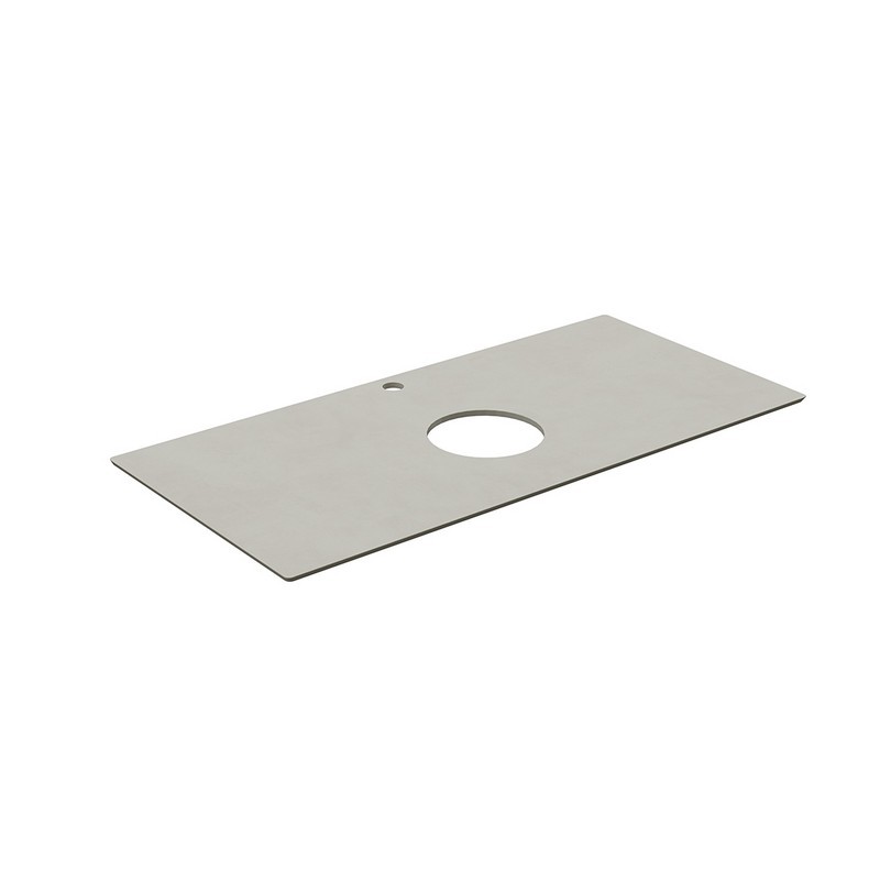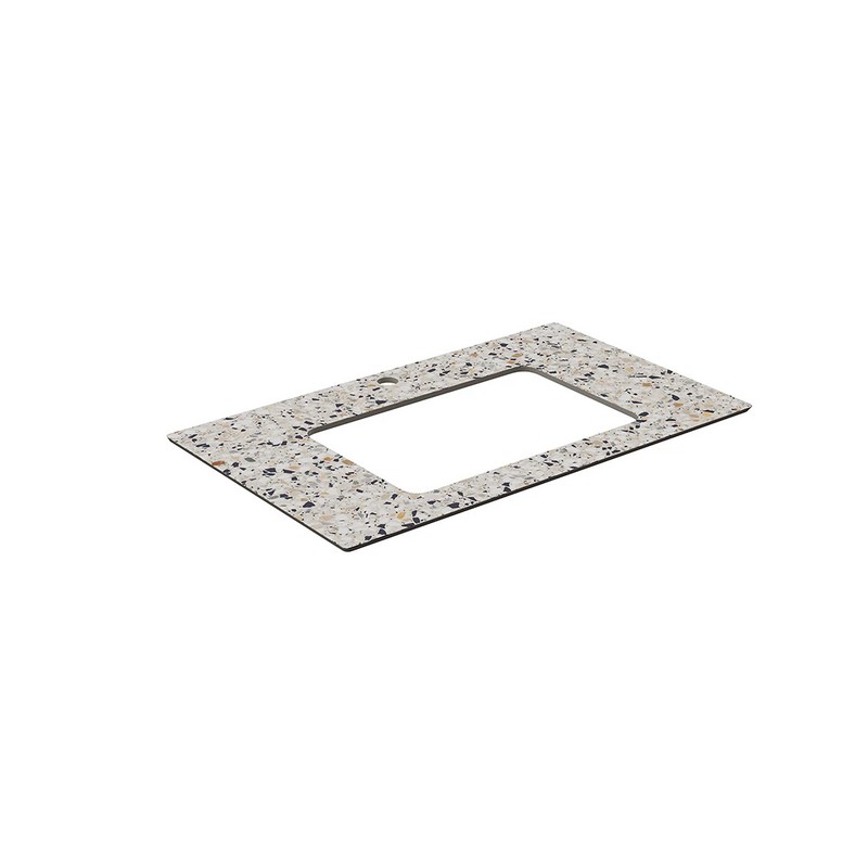 Столешница из керамического гранита Монте Тиберио с отверстием под смеситель. Предназначена для использования с накладными раковинами АртБейзинс и тумбами серии Плаза Модерн и Плаза Некст. Отверстия для раковины и смесителя располагаются в центре. Смеситель устанавливается в столешницу (используйте смесители с подходящим типом установки)